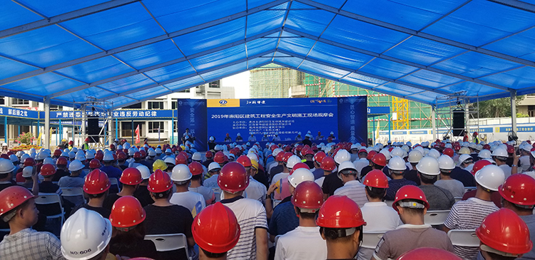 2019年6月19日下午,惠陽區(qū)建筑工程安全生產(chǎn)文明施工現(xiàn)場觀摩會在公司承建的星河盛世名居項目召開。惠州市住房和城鄉(xiāng)建設(shè)局副局長商紅新、惠陽區(qū)住房和城鄉(xiāng)建設(shè)局副局長溫偉新等相關(guān)主管部門領(lǐng)導(dǎo),各建設(shè)單位、施工企業(yè)、監(jiān)理公司負(fù)責(zé)人,在建工程項目負(fù)責(zé)人、專職安全員、總監(jiān)理工程師、專業(yè)監(jiān)理工程師等近900人參加了活動,人數(shù)規(guī)模創(chuàng)惠陽區(qū)歷次觀摩之最。