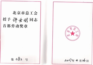 2003年,許世明所在的“當(dāng)代城市家園外墻保溫工程”質(zhì)量管理小組被江蘇省建設(shè)廳授予江蘇省工程建設(shè)優(yōu)秀質(zhì)量管理小組;當(dāng)代城市家園、中科院與清華大學(xué)(清楓華景園)、鳳凰城三期項(xiàng)目獲江蘇省建筑業(yè)新技術(shù)應(yīng)用示范工程;他本人參加編制的《聚苯保溫板與混凝土現(xiàn)澆復(fù)合外墻施工工法》被國(guó)家建設(shè)部批準(zhǔn)為2006年度國(guó)家級(jí)施工工法,在全國(guó)建筑行業(yè)中推廣;該同志編制的《插接栓式大模內(nèi)置現(xiàn)澆外墻外保溫施工工法》被江蘇省建管局批準(zhǔn)為2003年度江蘇省級(jí)施工工法,填補(bǔ)了省內(nèi)空白,在全省建筑系統(tǒng)中推廣。