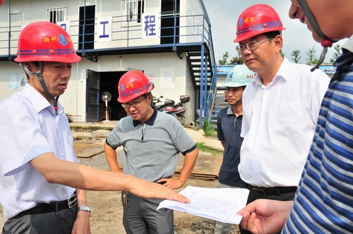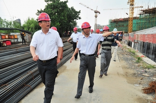 陳揚副市長視察建設大廈工地 時間:2011-08-12 4986 8月12日下午,揚州市政府副市長陳揚、市建設局局長楊正福一行前往江蘇華建代建的揚州建設大廈暨規劃展覽館、市民中心項目工地現場視察。揚州建工控股公司、江蘇華建董事長陸金龍陪同視察,并將工程施工進展情況向陳副市長作了簡要匯報。陳副市長對建設大廈總體施工進展表示滿意,并提出希望所有參建單位精心組織,科學管理,確保這一政府重點工程建設順利推進。公司領導程杰等一起陪同視察。