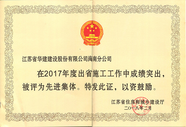 海南公司連續六年榮獲江蘇出省施工先進集體