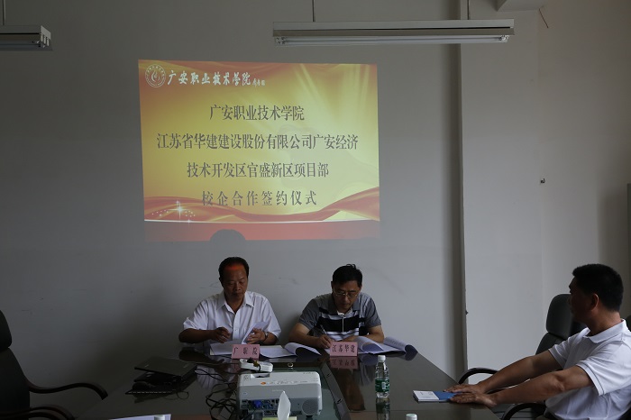 江蘇華建廣安官盛新區建設項目部與廣安職業技術學院舉行校企合作簽約儀式