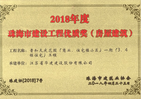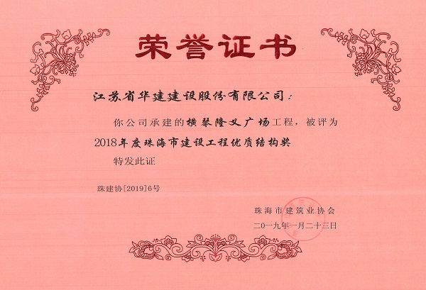 3月1日,珠海市建筑業(yè)協(xié)會第四屆五次會員大會在珠海德瀚大酒店隆重召開,會上對2018年度珠海市建筑業(yè)先進單位、先進個人、優(yōu)質(zhì)工程進行了表彰。珠海區(qū)域公司獲評2018年度珠海市建筑業(yè)優(yōu)秀企業(yè),公司總經(jīng)理呂方達榮獲2018年度珠海市建筑業(yè)優(yōu)秀企業(yè)家稱號,左兆金被表彰為優(yōu)秀項目經(jīng)理。此外,公司3個項目分獲表彰,晉和天慶花園一期工程獲評2018年度珠海市建設(shè)工程優(yōu)質(zhì)獎(房屋建筑),橫琴隆義廣場、華策國際大廈被評為2018年度珠海市建設(shè)工程優(yōu)質(zhì)結(jié)構(gòu)獎。