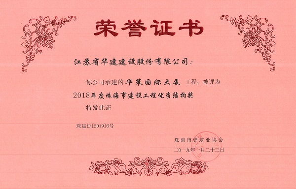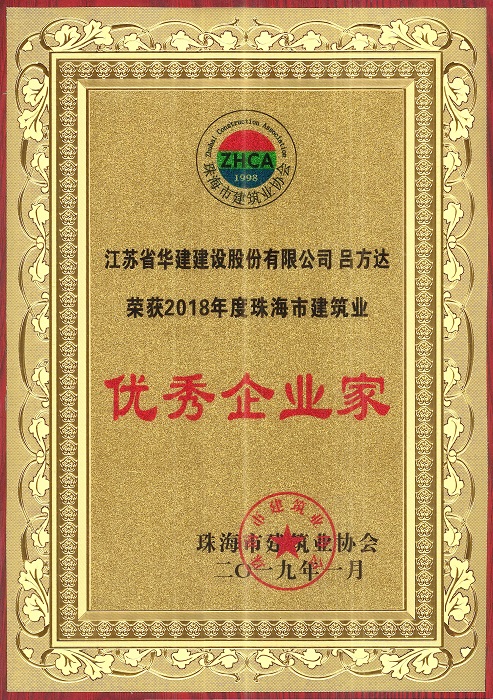 公司獲評2018年度珠海市建筑業(yè)優(yōu)秀企業(yè)