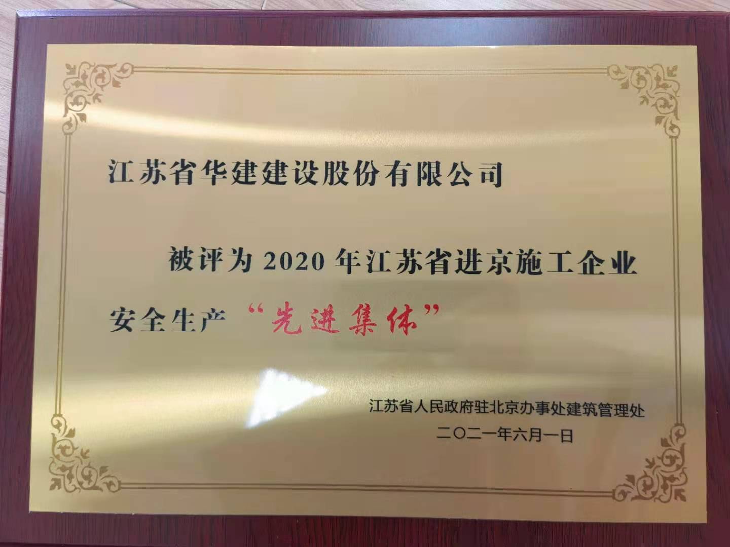 近日從江蘇省駐京辦傳來喜訊,江蘇華建北京分公司被評為2020年度江蘇省進京施工企業安全生產...