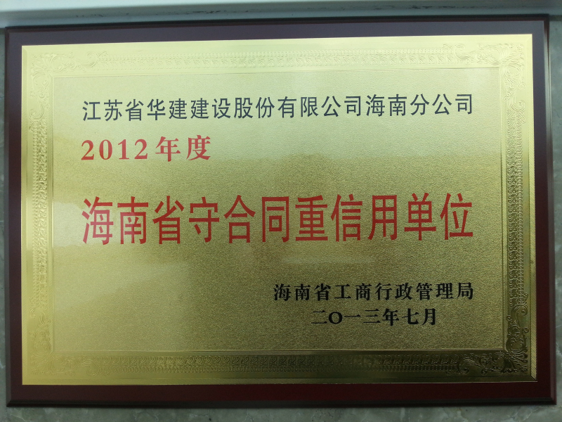 8月底,海南分公司被海南省工商行政管理局表彰為2012年度“海南省守合同重信用單位”,這是...