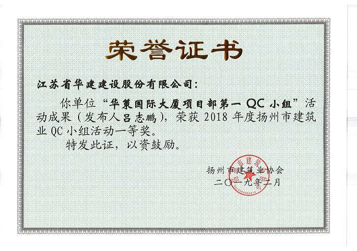 近期,揚(yáng)州市建筑行業(yè)協(xié)會(huì)公布了2018年度揚(yáng)州市工程建筑業(yè)優(yōu)秀QC小組活動(dòng)成果評比結(jié)果,公...