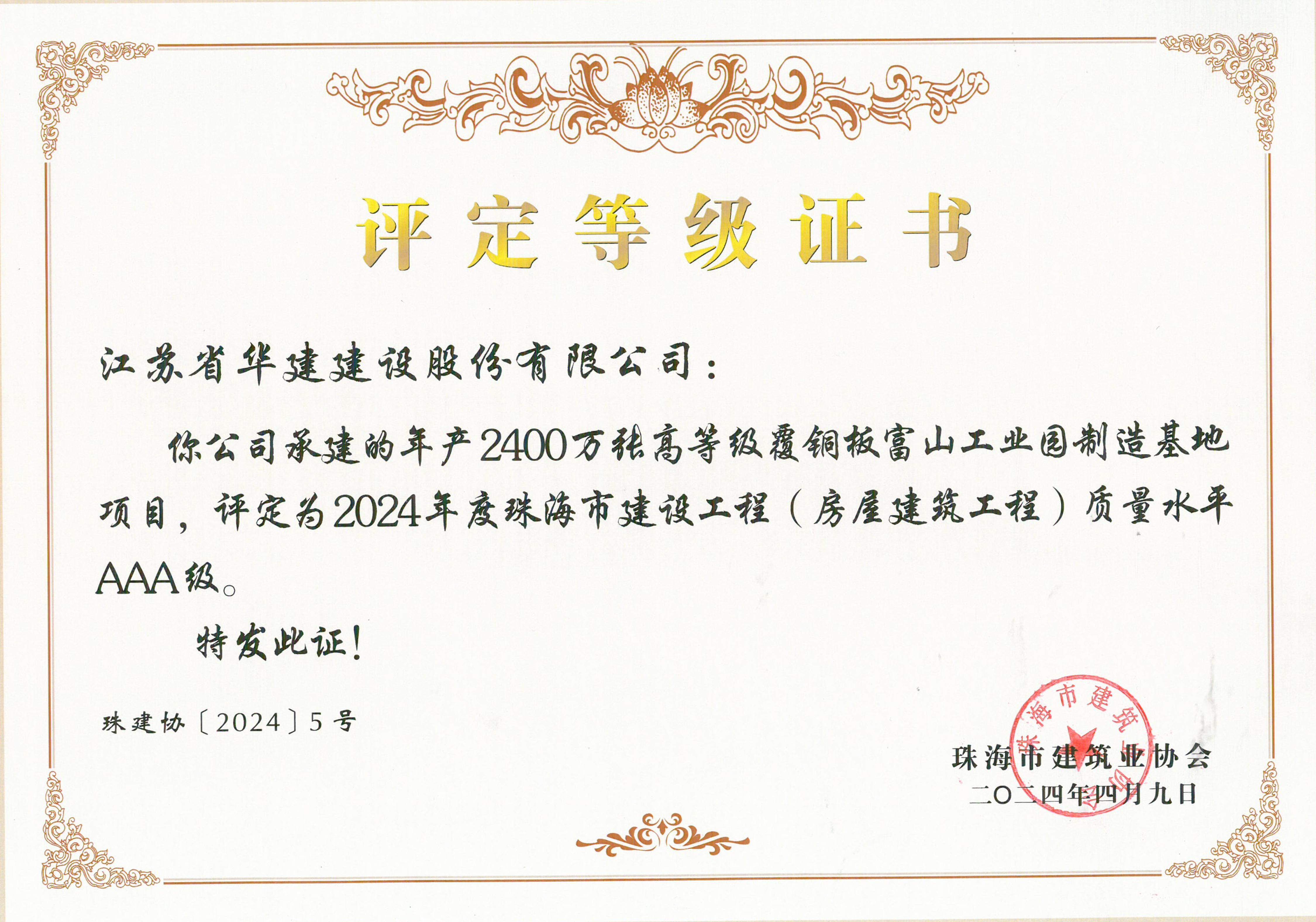 近日,珠海市建筑業(yè)協(xié)會公布2024年度珠海市建設(shè)工程(房屋建筑工程)質(zhì)量水平評定結(jié)果,由珠...