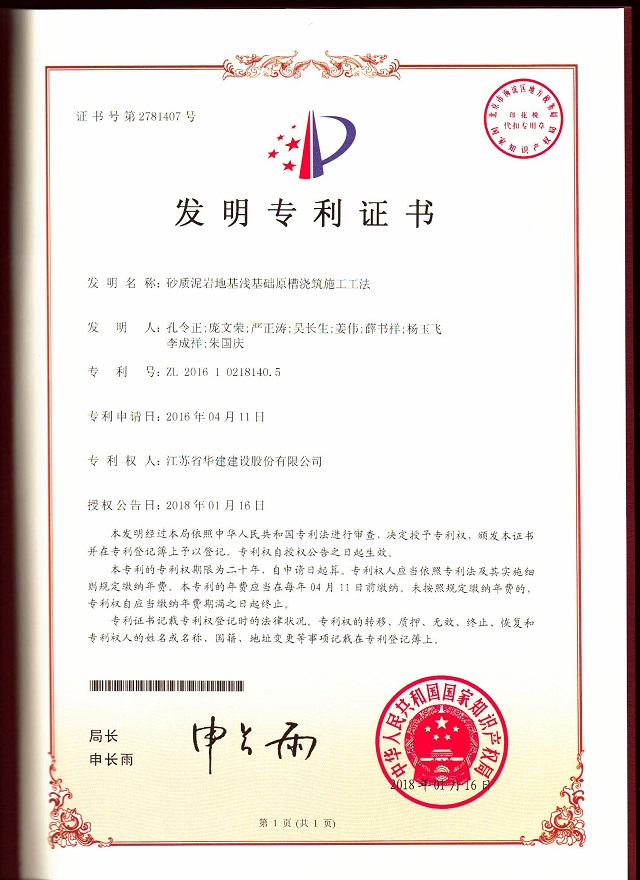 近日,從國家知識產(chǎn)權(quán)局傳來好消息,重慶分公司申報的技術(shù)成果《砂質(zhì)泥巖地基淺基礎(chǔ)原槽澆筑施工...