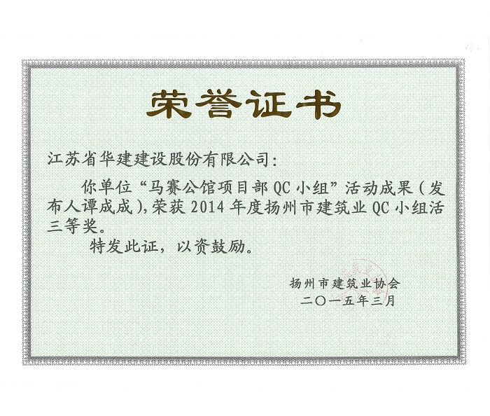 近日,揚州市建筑業協會發文表彰了2015年度全市建筑業QC小組活動成果獎,公司共有5項成果...