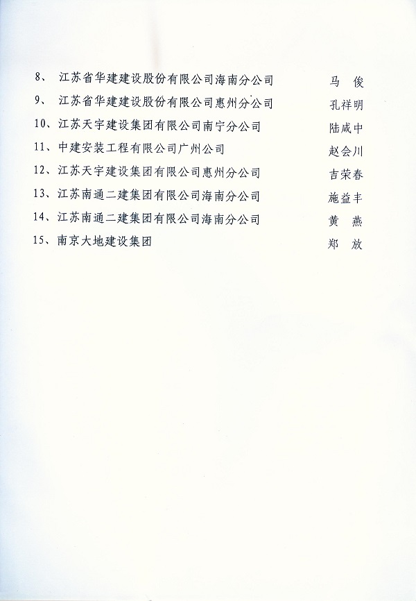 2013年江蘇進粵、桂、閩、瓊建筑施工先進企業、優秀企業經理...