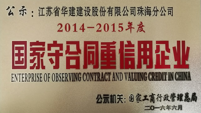 珠海市人居環境建設突出貢獻單位(優秀建筑施工企業)