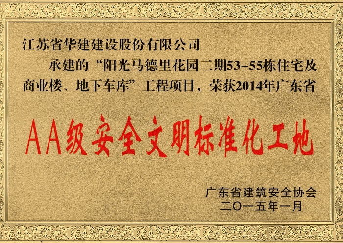 陽光馬德里二期工程榮獲2014年廣東省AA級(jí)安全文明標(biāo)準(zhǔn)化工...