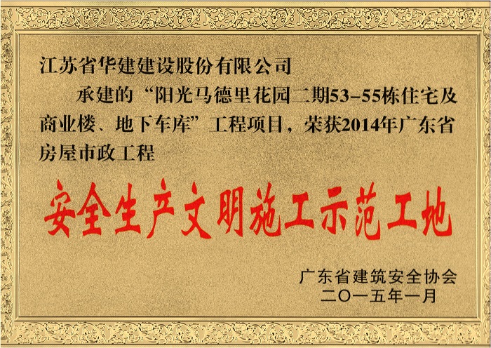 陽光馬德里二期工程榮獲2014年廣東省房屋市政工程安全生產(chǎn)文...