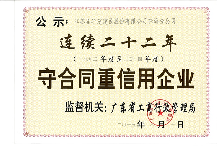 2015廣東省連續(xù)二十二年守合同重信用企業(yè)
