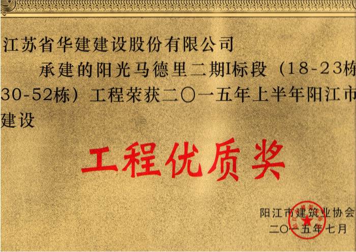 陽光馬德里二期I標(biāo)段(18-23棟、30-52棟)工程獲20...
