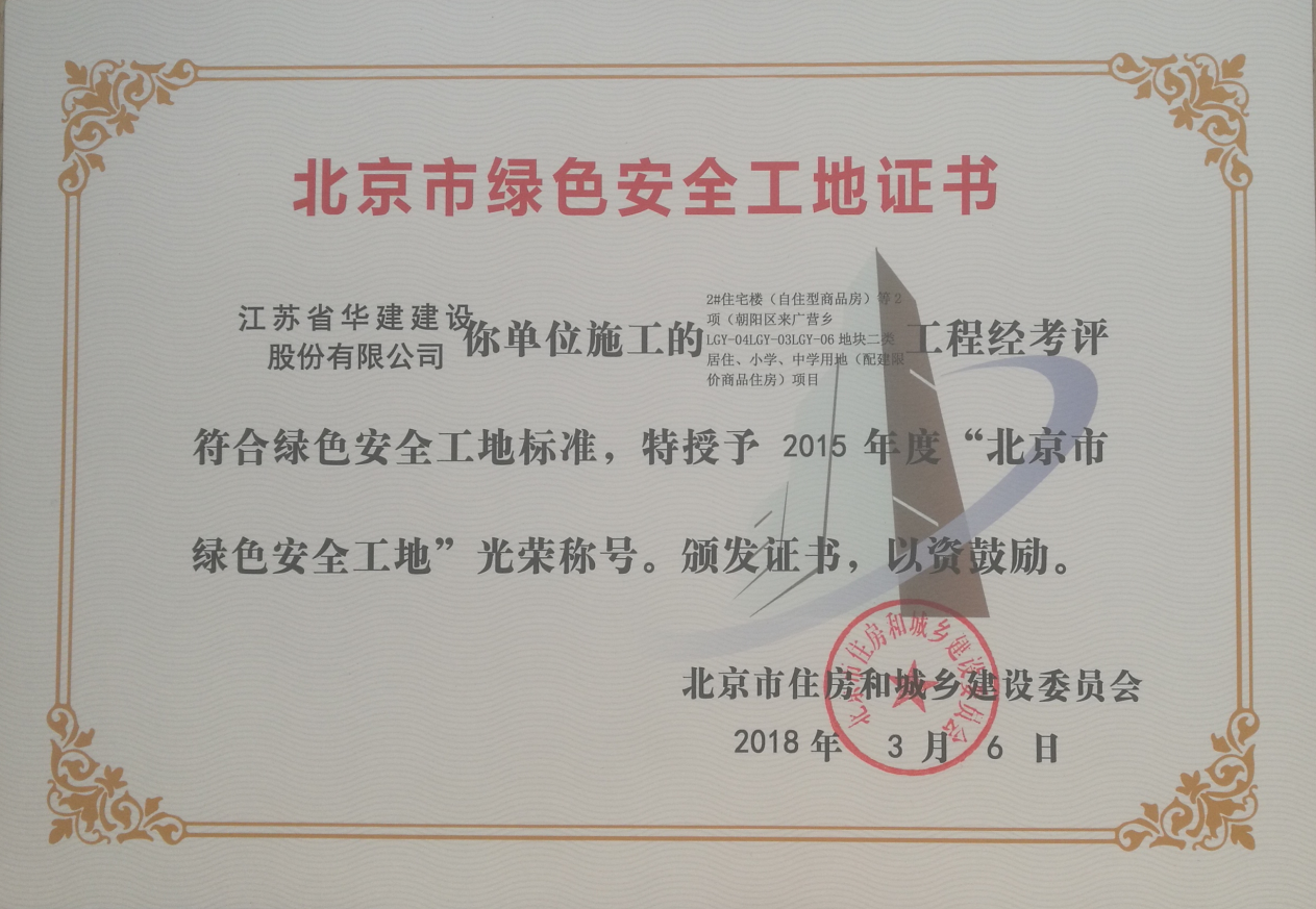 北京公司兩項工程獲北京市綠色安全工地 時間:2018-03-10 3692 近日,從北京市住房和城鄉建設委員會傳來喜訊,由北京公司總包承建的恒大名都2#住宅樓(自住型商品房)等2項及金域華府1號商業辦公樓等6項兩個標段項目榮獲 “北京市綠色安全工地”光榮稱號,并獲頒證書。