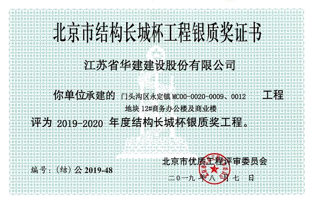 近日,北京市工程建設(shè)質(zhì)量管理協(xié)會公布了2019-2020年度第一批北京市建筑結(jié)構(gòu)長城杯獲獎工程名單,由我司承建的門頭溝區(qū)永定鎮(zhèn)MC00-0020-0009、0012地塊6#住宅樓及商業(yè)樓項目和門頭溝區(qū)永定鎮(zhèn)MC00-0020-0009、0012地塊12#商務(wù)辦公樓及商業(yè)樓項目均被評為2019-2020年度結(jié)構(gòu)長城杯銀質(zhì)獎工程。