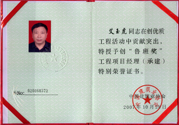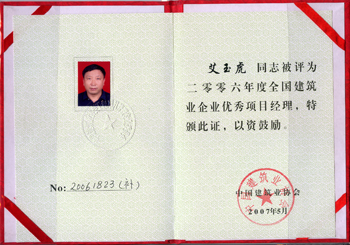 出色的工作,顯著的業績,使他和他的團隊贏得了片片贊譽。他先后榮膺深圳市“五一”勞動獎章、深圳市直機關優秀共產黨員、全國建筑業優秀項目經理等榮譽稱號,艾玉虎項目經理部被授予“廣東省工人先鋒號”。