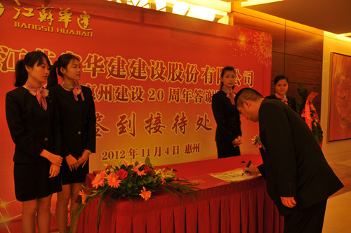 11月4日,公司在惠州隆重舉辦參加惠州建設(shè)20周年答謝酒會(huì),副董事長(zhǎng)、總經(jīng)理宗有農(nóng)主持并作開場(chǎng)致辭。惠州市有關(guān)政府部門、部分合作方企業(yè)的負(fù)責(zé)人,華建聯(lián)盟成員單位負(fù)責(zé)人,公司董事、監(jiān)事和高管等130余人出席酒會(huì)。惠州公司總經(jīng)理華恒榮介紹了公司參加惠州建設(shè)二十年的有關(guān)情況。惠州市工商聯(lián)主席、恒宇實(shí)業(yè)發(fā)展公司董事長(zhǎng)楊滿芳代表合作方發(fā)言,惠州市住房和城鄉(xiāng)規(guī)劃建設(shè)局副局長(zhǎng)陳訓(xùn)政代表政府主管部門致辭,分別對(duì)江蘇華建進(jìn)惠施工二十周年表示祝賀。公司董事長(zhǎng)陸金龍代表總部對(duì)惠州市有關(guān)政府部門、相關(guān)合作方和社會(huì)各界人士給予公司的關(guān)心和支持表示誠(chéng)摯的感謝,并表達(dá)了進(jìn)一步加大支持力度、加強(qiáng)戰(zhàn)略合作、加快科學(xué)發(fā)展的意愿。