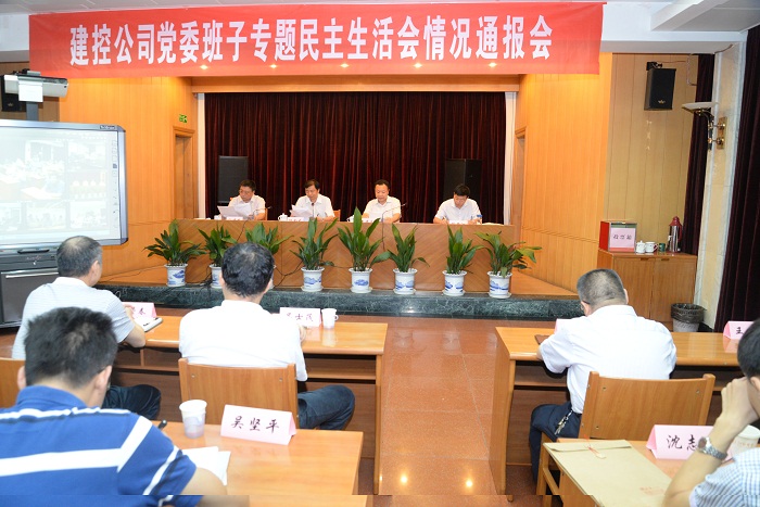 8月8日上午,按照市教育實踐活動領導小組辦公室的統一部署,公司黨委在后一樓會議室召開了建控公司黨委班子專題民主生活會情況通報會,市委第12督導組組長戴前良、副組長陳貴江和督導組成員吳堅平、沈志遠、徐峰到會指導。黨委書記陸金龍主持會議,并對公司黨委班子專題民主生活會情況進行通報。副書記宗有農、吳士茂,黨委委員陳榮春、程杰、錢啟明、王宏到會。建控機關、公司總部中層以上人員、全體黨員;直屬單位黨組織主要負責人、分管負責人、黨務部門負責人;離退休黨員代表共57人參加會議。公司駐外各分支機構中層以上人員、全體黨員以視頻形式收聽收看。