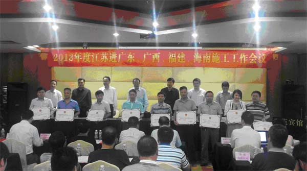 海南分公司榮獲2013年江蘇進粵、桂、閩、瓊施工先進企業 時間:2014-04-28 3859 4月25日,2013年度江蘇進廣東、廣西、福建、海南施工工作會議在珠海市市委黨校學苑賓館召開。會上,海南分公司榮獲“2013年江蘇進粵、桂、閩、瓊施工先進企業”,高家馴被表彰為“2013年江蘇進粵、桂、閩、瓊施工優秀企業經理”,1人被評為優秀建造師、2人分別被評為質量安全和經營財務管理先進個人。 另訊:4月19日,從中國施工企業管理協會第29次年會傳來喜訊,海南公司匡新益被評為2013年度“全國工程建設優秀項目經理”。