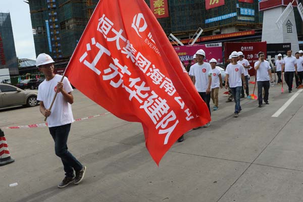 江蘇華建積極響應(yīng)海口市“雙創(chuàng)”活動 時間:2015-09-01 2728 8月29日上午,海口市龍華區(qū)“雙創(chuàng)”啟動大會在我公司承建的恒大外灘中心項目現(xiàn)場召開,龍華區(qū)區(qū)委書記王東等領(lǐng)導出席啟動儀式,公司副總、海南分公司總經(jīng)理王宏到會并做表態(tài)發(fā)言。 隨后,會場舉辦“我愛海口,力爭雙創(chuàng)”授旗儀式,并組織志愿者“自掃門前雪”,手拿掃把、簸箕等工具,將所屬衛(wèi)生轄區(qū)打掃得干干凈凈,以實際行動來踐行“雙創(chuàng)”工作。