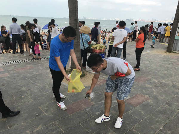 他們踏著共享單車,迎著驕陽,沿著美麗的濱海大道一路騎行,感受自然,宣傳健康生活的理念。同時(shí),在騎行路線的終點(diǎn)假日海灘,大家開展公益凈灘行動(dòng),拾撿垃圾,擁抱大海,用實(shí)際行動(dòng)來支持海洋保護(hù)。