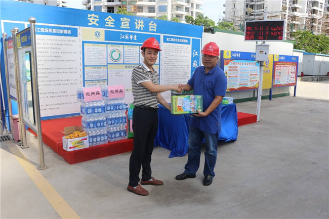 公司工會赴工地進行高溫慰問 時間:2019-06-11 2409 6月10日上午,海南分公司黨總支副書記、工會主席郁遠帶隊走訪慰問海口恒大·美麗沙項目部,檢查項目安全生產情況,并給奮戰在高溫、露天生產第一線的員工送去涼茶、綠豆、人丹等防暑用品,送去企業及工會組織的關懷。 在詳細詢問了工程推進情況和一線職工的工作、生活情況后,郁遠書記囑咐項目負責人要安排好施工現場人員的作息時間,做好降溫消暑保護措施。并叮囑一線的職工要注意人身與施工安全,合理安排工作時間,做到勞逸結合,確保高溫期的安全生產。(辦公室)