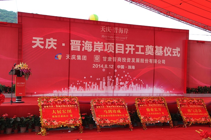 8月12日上午,由天慶集團、甘肅晉商投資發展股份有限公司共同開發的、江蘇華建珠海區域公司承建的天慶·晉海岸項目舉行隆重的奠基儀式。天慶集團董事長韓慶、甘肅晉商投資發展股份有限公司股東代表和金灣區常務副區長管偉、三灶鎮有關領導、珠海商界代表以及相關媒體等近300人參加奠基儀式。