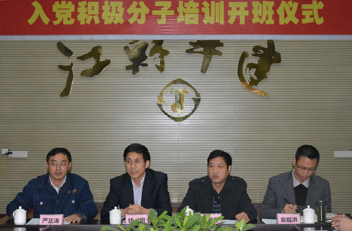 支部書記嚴(yán)正濤主持開班儀式并作動(dòng)員講話。他指出,舉辦本次培訓(xùn)班的主要目的就在于不斷壯大項(xiàng)目支部入黨積極分子隊(duì)伍,進(jìn)一步提高其黨性修養(yǎng)和綜合素質(zhì),夯實(shí)黨員發(fā)展工作基礎(chǔ)。對(duì)參加本次培訓(xùn)的入黨積極分子他提出三點(diǎn)要求:一是要明確學(xué)習(xí)目的,端正學(xué)習(xí)態(tài)度;二是要提高思想認(rèn)識(shí)、端正入黨動(dòng)機(jī);三是要加強(qiáng)黨性鍛煉,爭(zhēng)取早日入黨。官盛鎮(zhèn)黨委書記李常兵結(jié)合個(gè)人工作實(shí)際,與參加培訓(xùn)的入黨積極分子分享了作為一名共產(chǎn)黨員所肩負(fù)的使命和責(zé)任的心得體會(huì)。錢明書記則分別用三個(gè)“注重”來詮釋如何實(shí)現(xiàn)從一名積極分子成長(zhǎng)為一名合格共產(chǎn)黨員的轉(zhuǎn)變,即注重踐行宗旨,注重自覺奮進(jìn),注重建功立業(yè)。