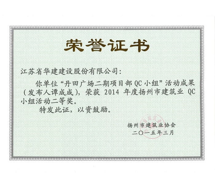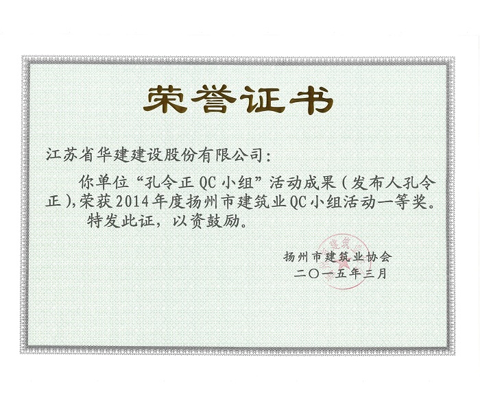 公司5項(xiàng)成果獲揚(yáng)州市建筑業(yè)QC成果獎(jiǎng)