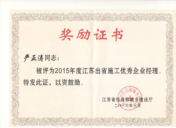 重慶分公司被表彰為“2015年度江蘇出省施工先進企業” 時間:2016-04-20 2961 近日,重慶分公司被江蘇省住房和城鄉建設廳表彰為“2015年度江蘇出省施工先進企業”,重慶分公司總經理嚴正濤榮獲“2015年度江蘇出省施工優秀企業經理”稱號,樊晨亮被評為“2015年度出省施工優秀黨務工作者”。