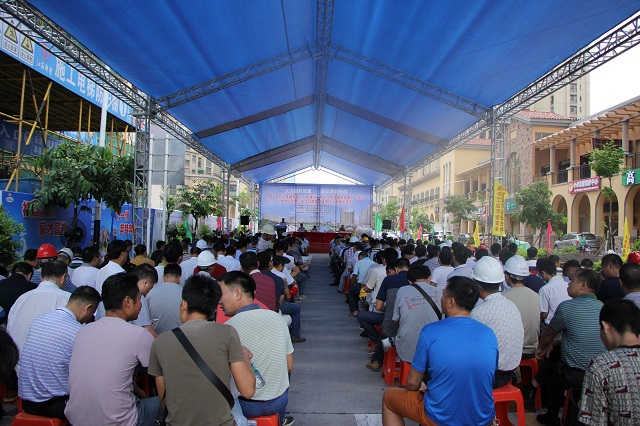 繼“2017年陽江市建筑工程安全生產文明施工示范工地現場觀摩會”之后,9月6日,陽江市“2017年建筑施工質量月和工程質量安全提升活動啟動儀式暨現場觀摩交流會”再次在我公司總包承建的陽光馬德里項目現場隆重舉行。陽江市住房規劃建設局分管質量安全副局長張牛、市質安監站站長林子歡、市建筑協會會長梁榮照,市建管科、質安監站全體人員,各縣(市、區)住房規劃建設局分管質量安全副局長、建管股股長、質監站站長,市直各施工企業和監理企業分管工程質量領導、質安部門負責人,市區在建工程建設單位代表,施工單位項目經理、質量員,監理單位項目總監和專業監理工程師,各縣(市、區)在建重點項目建設單位代表、施工單位項目經理、監理單位項目總監等400余人參加大會并觀摩陽光馬德里二期56-61棟施工現場。