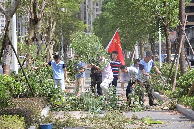 8月23日,珠海遭遇了53年來最強(qiáng)臺(tái)風(fēng)“天鴿”,全市受災(zāi)嚴(yán)重。臺(tái)風(fēng)過后,珠海公司第一時(shí)間迅速組織復(fù)產(chǎn)自救工作,并主動(dòng)聯(lián)系珠海有關(guān)部門,迅速組織志愿者及重型工程車輛投入到社會(huì)道路的清理中去。在這場抗風(fēng)救災(zāi)的戰(zhàn)斗中,珠海公司共疏通社區(qū)道路5條、市政道路3 條,清走倒伏大樹200余棵,運(yùn)送災(zāi)后垃圾 20車次。《揚(yáng)州日?qǐng)?bào)》A3版顯著位置對(duì)公司抗風(fēng)救災(zāi)活動(dòng)進(jìn)行了報(bào)道,點(diǎn)評(píng)江蘇華建珠海公司“眾志成城,生產(chǎn)自救,展現(xiàn)了揚(yáng)州建筑大軍的良好形象”。