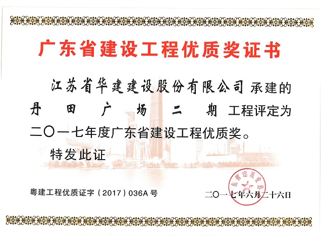 公司榮獲三項2017年度廣東省建設工程優質獎 時間:2017-10-17 3500 近日,廣東省建筑業協會發文公布2017年度廣東省建設工程優質獎名單,我司承建的珠海航空標準件保稅倉儲基地、丹田廣場二期和君怡花園小區中心商場3個項目榜上有名。